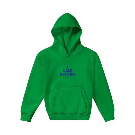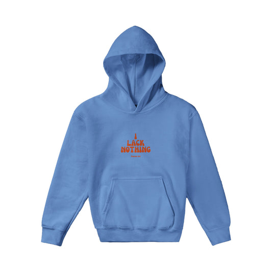 I Lack Nothing Kids Pullover Hoodie (Blue Font)