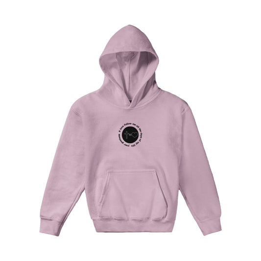 Love Never Fails Kids Pullover Hoodie (Black Font)